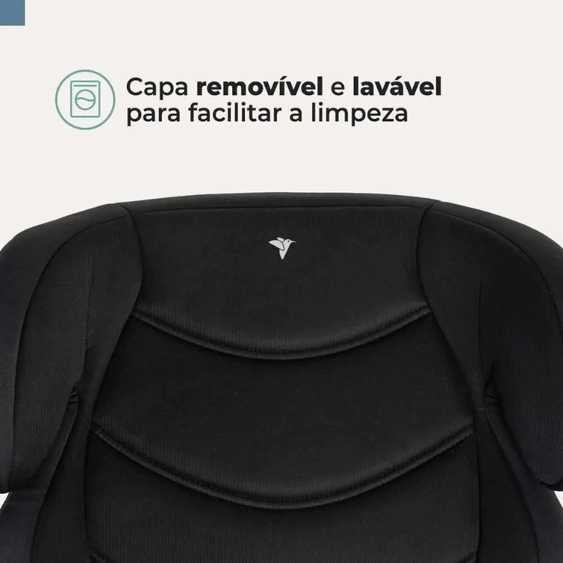 Possui sinalização da correta instalação no carro e capa totalmente removível e lavável em máquina.