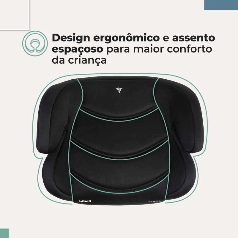 O Assento de elevação Stage da Infanti é espaçoso, confortável e de fácil utilização. Mais bonito e moderno, inteiro forrado com tecido macio e acolchoado. Indispensável para a segurança no transporte das crianças maiores no carro.