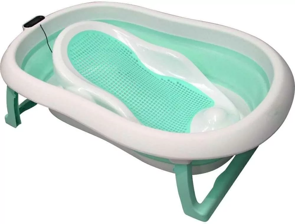Banheira dobrável.Material ecológico e resistente ao frio.Termômetro para medir a temperatura da água. NÃO INCLUI BATERIASMini jarro em forma de baleia.Poltrona redutora com grande grelha antiderrapante. Pode ser utilizado diretamente na banheira, o que otorna ideal para levar em viagem e dar banho no bebê com conforto.Pernas antiderrapantes.Profundidade e reclinação ajustáveis.Tampão de drenagem que muda de cor com a temperatura da água.Capacidade: até 28 litros.Esta banheira para bebé pode ser dobrada, tornando-a compacta e fácil de guardar.A profundidade e reclinação da banheira são ajustáveis.A espreguiçadeira cabe perfeitamente na banheira, para que possa utilizá-la desde os primeiros meses do seu bebée dar-lhe banho com conforto e segurança.Marca: Premium BabyEan: 7702331909061