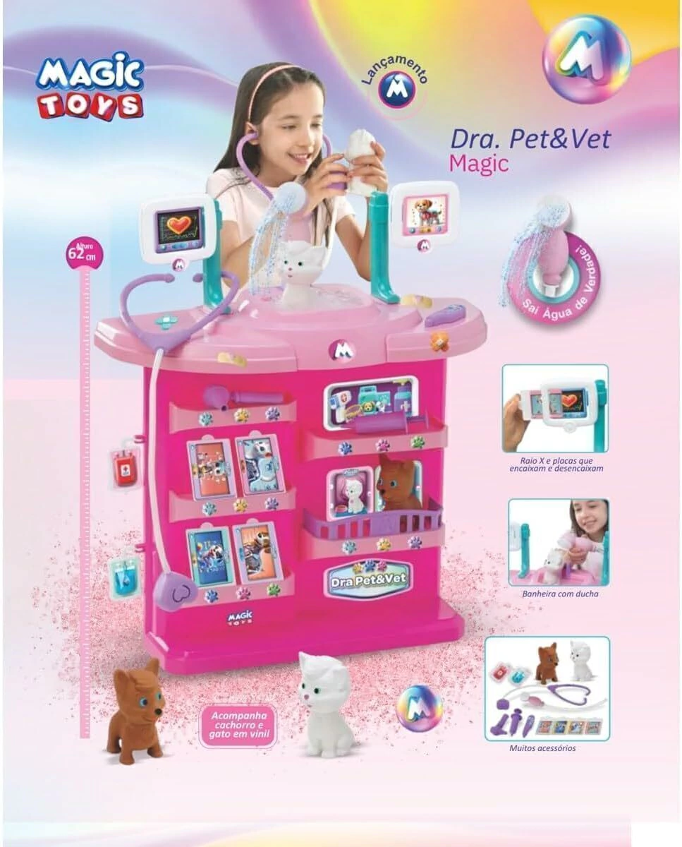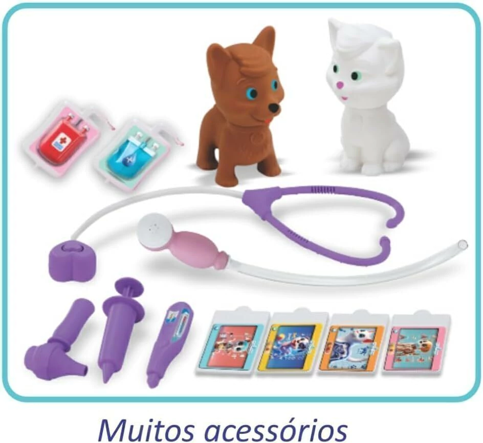 Prepare-se para cuidar dos animaizinhos com o Brinquedo Veterinário Infantil Dr. Pet da Magic Toys! Ideal para os pequenos apaixonados por pets, esse kit completo permite que a criança entre no mundo da medicina veterinária de forma divertida e educativa. O conjunto vem com um adorável cachorrinho de brinquedo e diversos acessórios para o atendimento: estetoscópio, termômetro, seringa, curativos, potinho de remédio, entre outros itens essenciais para cuidar bem do seu amiguinho de quatro patas. Contém: - 1 Estetoscópio - 1 Seringa - 1 Otoscópio - 1 Termômetro - 4 Plaquinhas de Raio-X - 1 Ducha - 1 Cão - 1 Gato - 1 Soro Ilustrativo - 1 Sangue Ilustrativo - 1 Cartela de Adesivos Tamanho: 62 cm Idade: Acima de 3 anos Material: Polipropileno Certificado Inmetro: IQB OCP 0006 000 090/2022