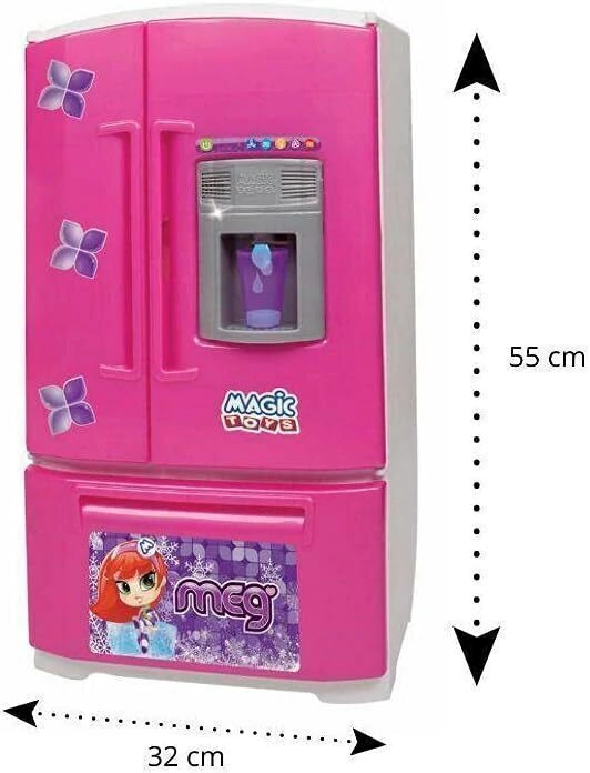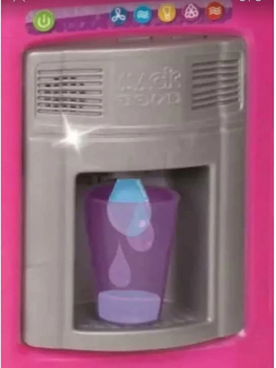 A Geladeira Inverse da Magic Toys possui dispenser que sai água de verdade, mecanismo com luz e som de gelos caindo.CARACTERÍSTICAS:Geladeira InverseCódigo: 8053PMarca: Magic ToysIdade recomendada: A partir de 3 anos.Gênero: FemininoComprimento: 31,5cmAltura: 55,5cmLargura: 23,6cmPeso do produto (sem caixa): 2,27KgCódigo de Barras: 7896839980537- Dispenser funciona de verdade- Sai água de verdade, com luz e som de gelo caindo- Copinho- Embalagem Parda- Forminhas de gelatina- Forminha de picolé- Potinho de manteiga- Os acessórios funcionam de verdade- Produto com som: Sim (som de gelo e água caindo)- Produto com luzes: Sim (luz pisca quando o botão do dispenser é acionado)- Utiliza bateria: Sim (03 baterias do tipo LR 44 de 1,65V)