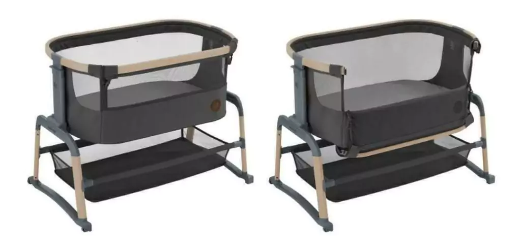 Função balanço calmante para tranquilizar o bebê Melhor respirabilidade e ventilação: laterais em tela facilitam a circulação de ar Tecidos premium respiráveis garantem conforto Eco-care: feito de tecidos reciclados Colchonete especial com generosa camada de espuma Fácil de mover: rodas embutidas facilitam deslocamento entre ambientes Função exclusiva de deslizamento lateral para auxiliar no correto encaixe na cama dos pais Grande cesto de armazenamento: tudo sempre ao alcance 5 ajustes de altura Permite regular alturas diferentes em cada lado, para conforto e alívio de refluxo ou congestões nasais. Tiras de segurança para fixação na cama dos pais incluídas Leve, com fechamento fácil e bolsa de transporte incluída Capa lavável à máquina;