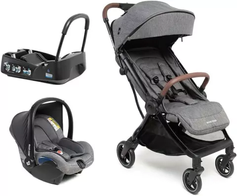 Tudo o que você precisa para passear ou viajar com seu bebê, juntos em um mesmo sistema. Esse é o Travel System Maxi-Cosi Eva³, um conjunto composto pelo carrinho Eva³, pelo bebê conforto e base: uma opção completa e super prática para o seu dia a dia.O compacto carrinho EVA³ e o confortável bebê conforto Citi² foram feitos para serem usados em sintonia, pensando em proporcionar momentos de lazer com a família, sem preocupações.A SOLUÇÃO PERFEITA PARA MOMENTOS ESPECIAIS EM FAMÍLIA.O Travel System Maxi-Cosi Eva³ foi pensado em cada detalhe para tornar os dias mais fáceis e, claro, mais especiais. O sistema possui a integração do carrinho Eva³ e do bebê conforto Citi² com base. Eles foram projetados para funcionarem muito bem juntos, e se tornarem uma solução segura e confortável para seu bebê.O carrinho Eva³ é supercompacto e de fácil manejo no dia a dia. Ele possui um mecanismo de fechamento automático e diversos dispositivos de segurança, como cintos de cinco pontos, totalmente ajustáveis e protetores acolchoados. As rodas possuem suspensão e uma textura diferenciada, que ajuda na adesão ao solo e também traz modernidade para o design do carrinho. Além disso, possui regulagem de inclinação do assento e do apoio de pés, com trava em uma posição elevada e mais 2 posições diferentes, o que ajuda a encontrar a posição mais confortável para o bebê.Já o bebê conforto Maxi-Cosi Citi² torna-se o complemento perfeito para o Eva³. Sua estrutura leve, pesando apenas 3,1 Kg e seu design intuitivo e moderno, faz com que o transporte no carro, na mão e até no avião seja feito de forma muito descomplicada. Conforto também é muito importante, e o Citi² tem um assento espaçoso e acolchoado, possui um redutor extra confortável, com memory foam, o que ajuda na sustentação e posição correta da cabeça, até para recém-nascidos.MODERNIDADE E CONFORTO PARA O SEU DIA A DIAA combinação entre o carrinho EVA³ e o bebê conforto Citi² reúnem características muito modernas que ajudam no dia a dia e tornam a vida do bebê e dos pais, mais fácil e confortável.A capota de proteção, tanto do carrinho Eva³ como do bebê conforto Citi² é ampla e moderna. No carrinho, ela possui aba de sol removível, que pode ser acionada ou retirada, visor peek-a-boo com fechamento em imã, ring toy para pendurar o brinquedo preferido do bebê e ainda, um mosquiteiro com zíper frontal para acessar o bebê sem remover, que impede a entrada de luz excessiva e insetos, protegendo o descanso do bebê. Já no bebê conforto Citi², a capota é feita de tecido esportivo, não amassa e é lavável na máquina, assim como toda a capa.O bebê conforto Citi² vem com a base, que ajuda bastante na hora de instalar no carro. E se por algum motivo não puder usar a base, não há problema, ele pode ser instalado no carro com cinto de três pontos, normalmente.O Travel System Eva³ da Maxi Cosi é a solução e escolha perfeita para viagens que vão além das estradas. O bebê conforto Citi² pode ser instalado na poltrona do avião, pois tem uso aprovado pela maioria das companhias aéreas (consulte a sua companhia para confirmar) e oferece proteção adicional para seu pequeno durante turbulências. E o carrinho Eva³, por ser leve e compacto, pode ser levado como bagagem na cabine do avião.O sistema completo é aprovado pelo INMETRO, e garante a segurança do seu bebê em todos os momentos.