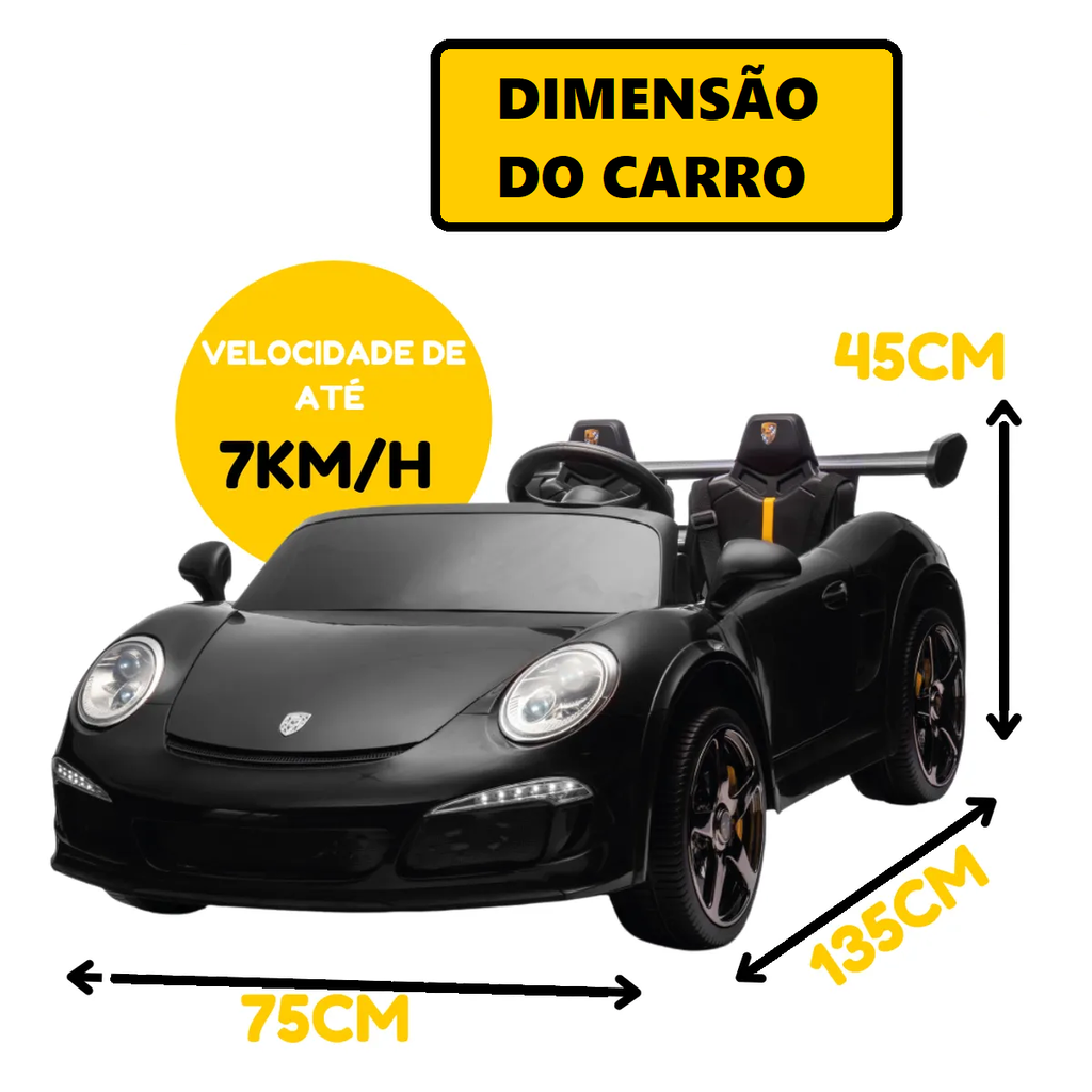 Mini Carro Elétrico Infantil Porsche Preta 24v Controle Remoto Led - ZippyToysDescubra a emoção e a diversão com o Mini Esportivo 24V da marca Zippy Toys. Projetado para proporcionar momentos inesquecíveis, este veículo elétrico é perfeito para crianças de até 25kg que buscam aventuras emocionantes. Com uma velocidade máxima de 7km/h, este mini esportivo oferece uma experiência de condução emocionante e segura.Equipado com uma bateria recarregável de alta performance, o Mini Esportivo 24V inclui um carregador para garantir horas intermináveis de brincadeiras. Seja no quintal ou em passeios ao ar livre, a durabilidade da bateria varia de 40 minutos a 1 hora, garantindo que a diversão não tenha limites.Além disso, a praticidade é garantida com o controle remoto, permitindo aos pais supervisionar e controlar o veículo remotamente. Com design moderno e cores vibrantes, o Mini Esportivo 24V da ZippyToys é mais do que um brinquedo - é uma experiência única que estimula o desenvolvimento motor e proporciona momentos inesquecíveis.ESPECIFICAÇÕES:- Recomendado a partir de 18 meses- Dimensões aproximadas da embalagem (CLA): 110 x 73 x 34 cm- Dimensões aproximadas do produto (CLA): 82 x 46 x 40 cm- Peso máximo suportado: 25kg- Velocidade máxima: 7km/h- Com bateria recarregável, carregador e controle remoto- Duração da bateria: de 40 min à 1 hora- Marca: Zippy ToysAviso legal- A duração da bateria depende do uso que se dê ao produto.
