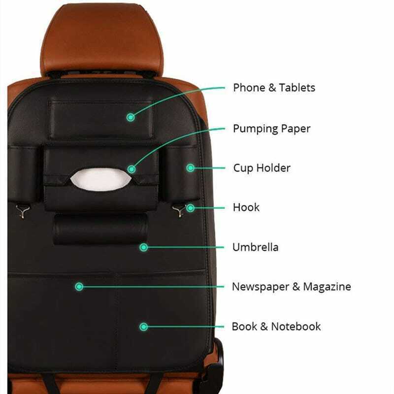 - Este organizador do banco traseiro do carro foi projetado com vários compartimentos de armazenamento, incluindo bolsos de malha, para guardar seus brinquedos, livros, iPads, garrafas, bebidas, guarda-chuvas e muito mais, adequado para a maioria dos carros, veículos e SUVs. Dá-lhe mais espaço de armazenamento e mantém seu carro arrumado. Com bandeja dobrável resistente.